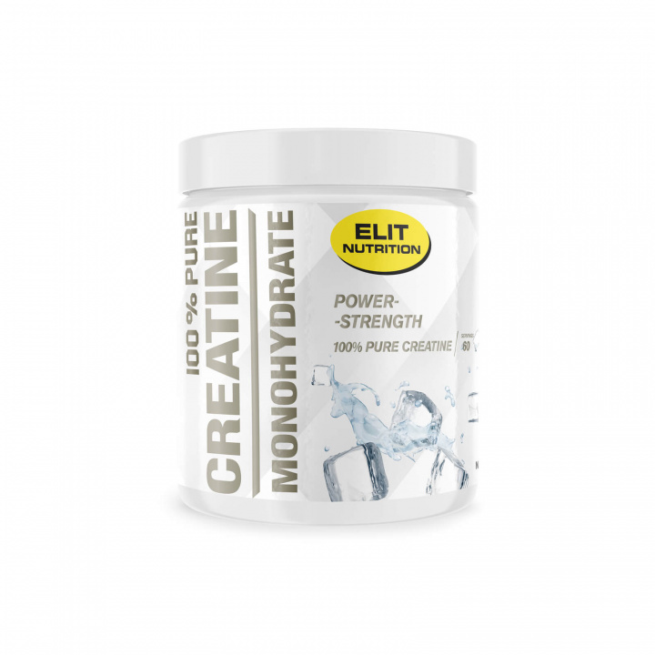 100% Pure Creatine Monohydrate från Elit Nutrition består av, som namnet säger, 100% kreatin. Med hjälp av ett kontinuerligt intag av kreatin förstärks muskelns fysiska prestation vid högintensiv och kortvarig träning och därigenom förbättrad styrka och muskeltillväxt.