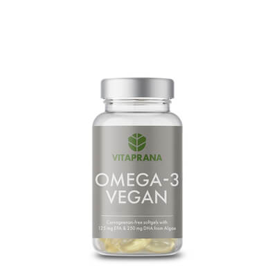 - Vegansk algbaserad omega-3 med EPA och DHA