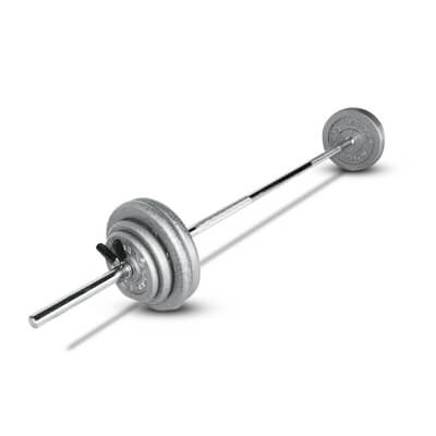 Skivstångsset med skivstång 147 cm lång, 2 lås och 8 viktskivor i hammarlack av hög kvalite.